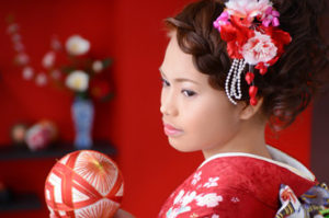 真っ赤な振袖とドレスで成人式の前撮り撮影 (足立区のお客様)