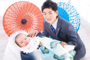 お兄ちゃんも一緒に!祝着でお宮参り記念写真(越谷市のお客様)