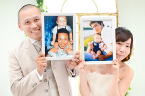 家族一緒に!二人の仲の良さが伝わる結婚写真(越谷市のお客様)